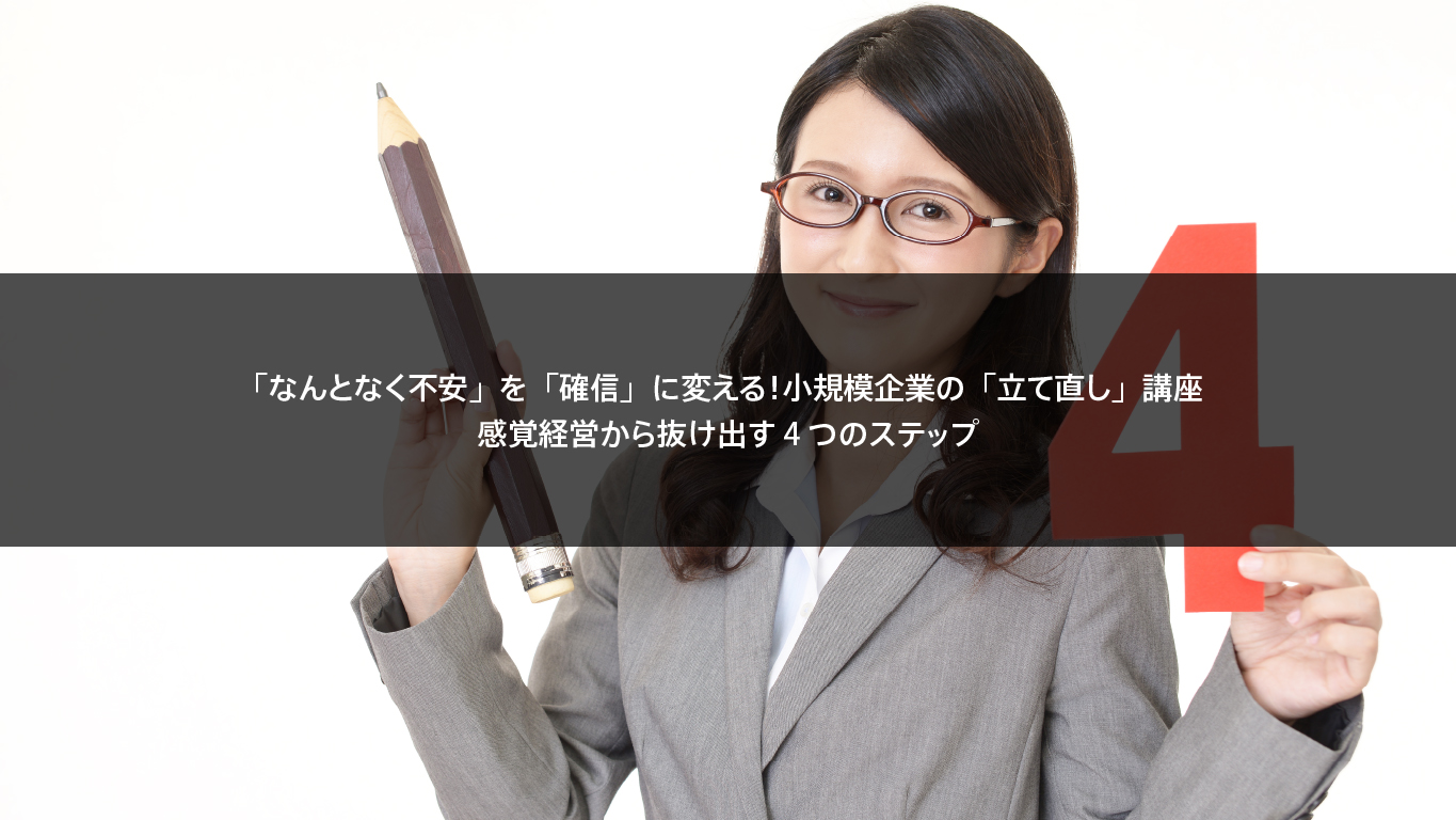 そこで本シリーズ『「なんとなく不安」を「確信」に変える!小規模企業の「立て直し」講座』では、数字が苦手な経営者でも理解できるように、経営の基礎を立て直す4つの実践ステップをお伝えします。この4つのステップは、多くの小規模企業において成果を出してきた経営改善手法を、誰でも実践できるように体系化したものです。